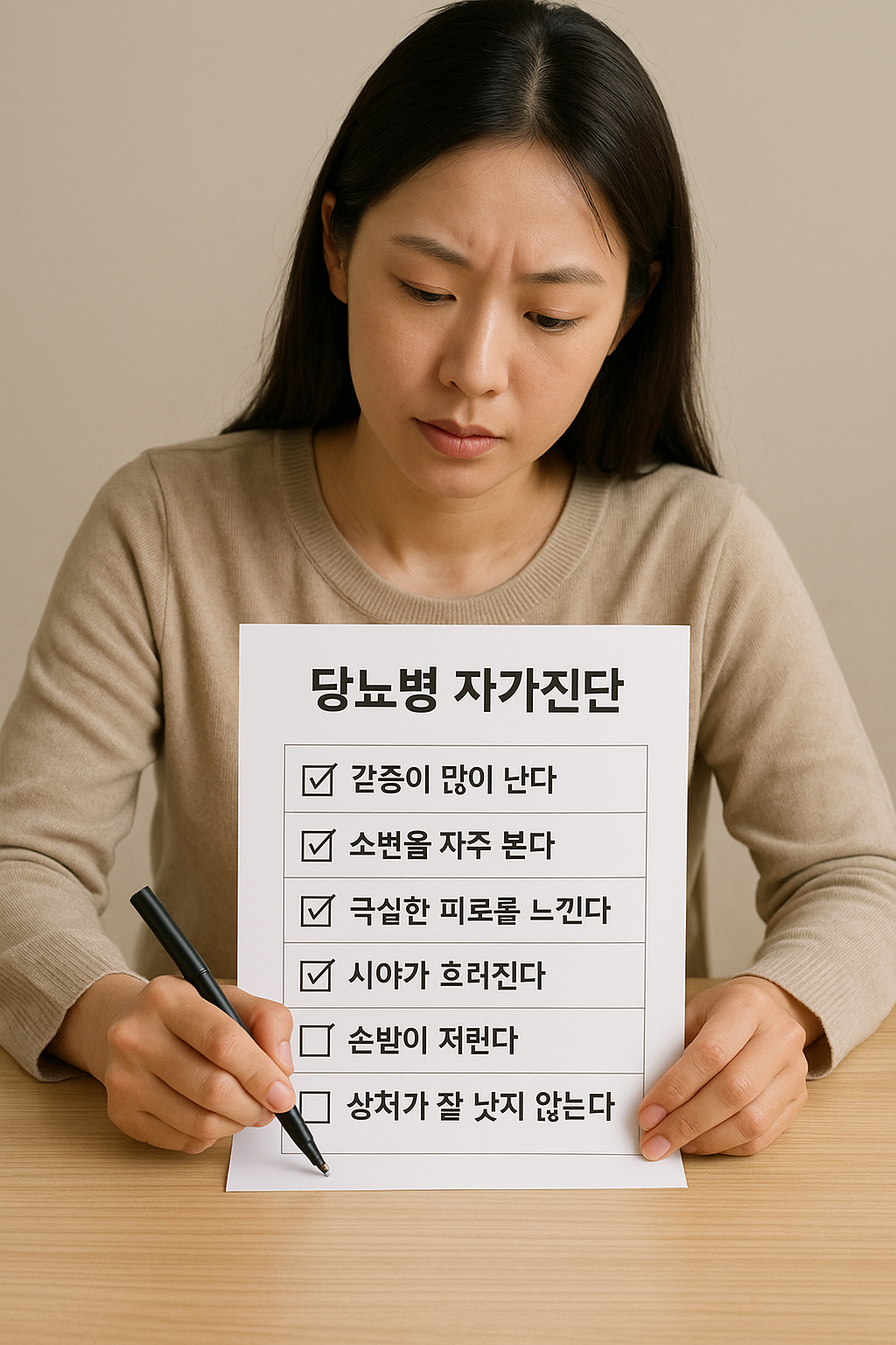 ✅ 자가진단 체크리스트를 통해 당뇨병 위험 신호를 조기에 감지할 수 있습니다.